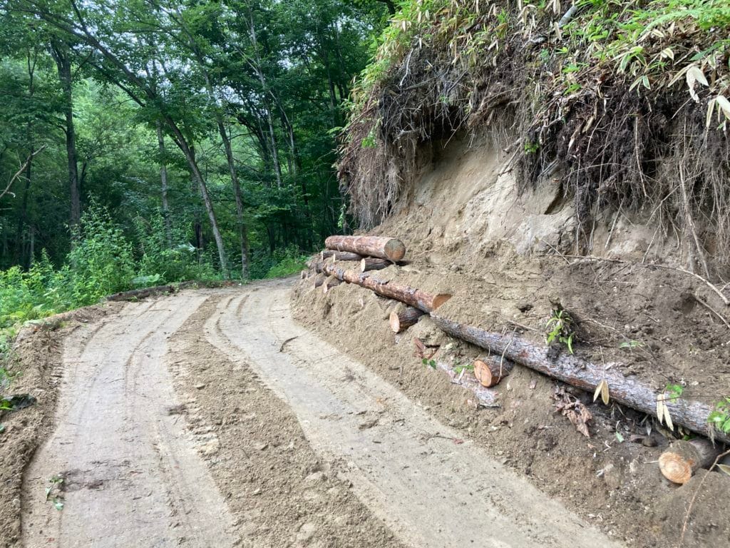 水があるのは手を洗えたり、山菜を洗えたりと便利ですが、山林を分断するように流れている場合は橋や暗渠を組まなければいけません。